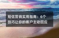 短信营销实用指南的六个技巧,旨在帮助企业在竞争激烈的环境中提升短信营销效果,让客户主动回应。通过有效的标题设计、内容结构安排、精准发送时空选择和个性化数据管理,可有效提高短信打开率和点击率,从而提高转化率。同时,也提醒企业在实施短信营销过程中应避免的